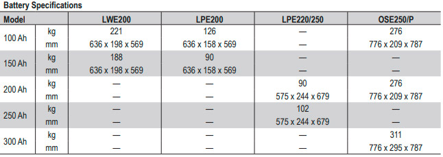 Hoy la energía se almacena en una batería de ácido de plomo o gel, que necesita un período de recarga de entre 6 y 12 horas, limitando las posibilidades de uso continuo en operación. Las baterías Li-Ion proporcionan más eficiencia energética y pueden ser cargadas dentro de una hora.